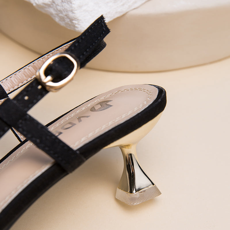 VDEN Pointed Stiletto Heels Mid Heel (2INCH) A098-46 New Korea Women Shoes Bow Shoe Buckle A098-46