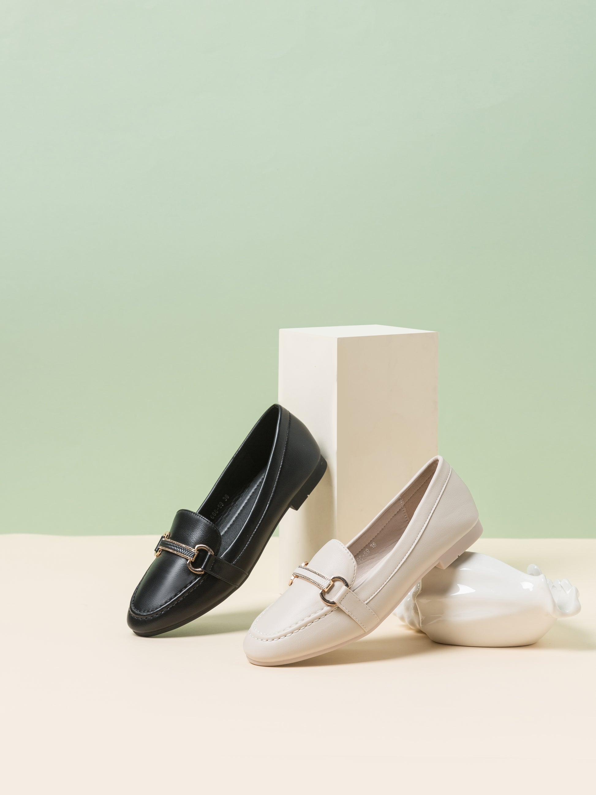 Crafted from patent leather, these loafers exude a timeless charm with a matte finish, making them suitable for a variety of occasions. The simple design and flat heel, measuring less than 1 cm, offer a balance between sophistication and ease, allowing you to stride comfortably throughout the day.