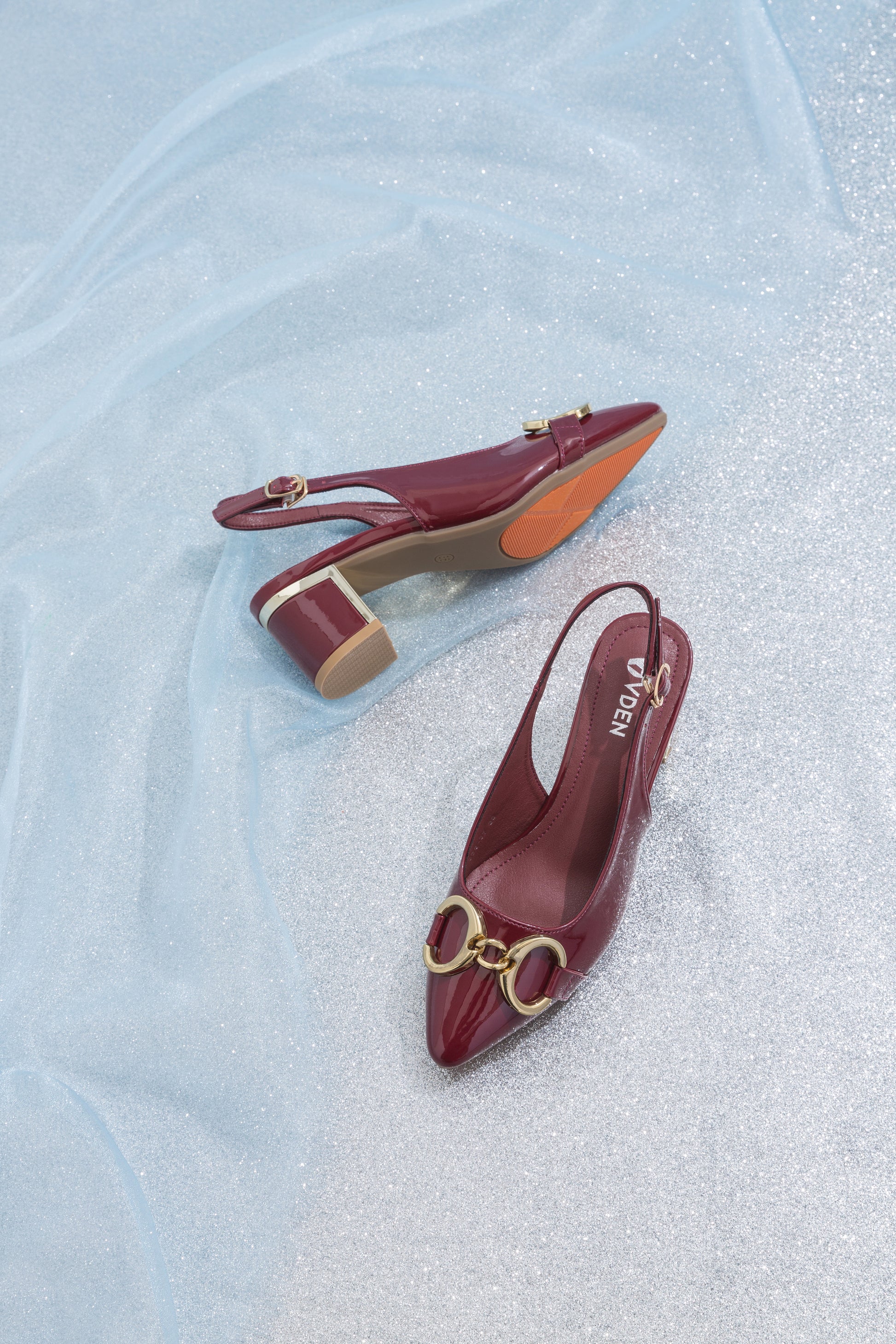 VDEN Women's Classy Stiletto Pointed Shoes 2INCH 525-37 Patent Leather Block Heels Buckle Back Strap